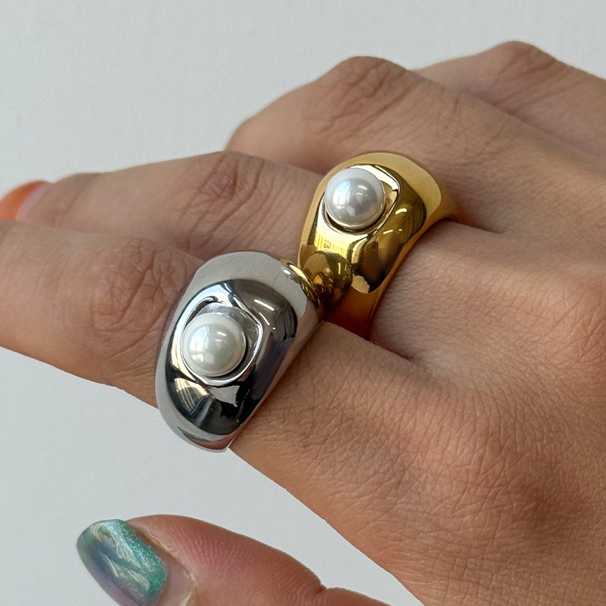 Anillos de estilo Titanio Acero Perla inmarcesible