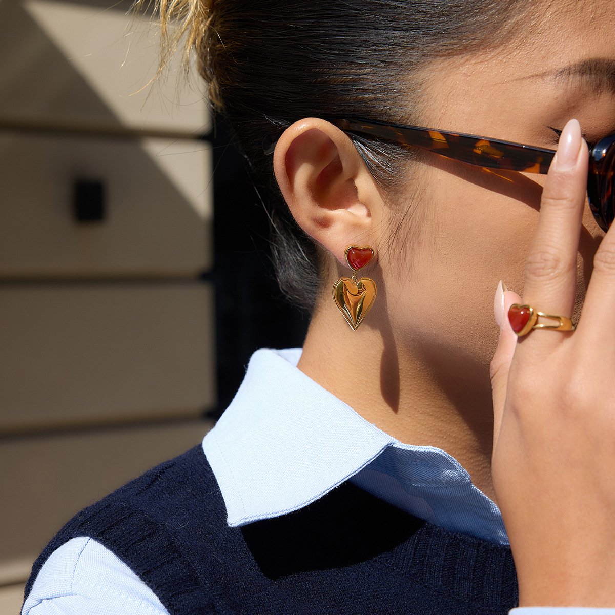 The heart shape adds a symbolic and romantic touch, perfect for expressing love or appreciation. Its modern design is both playful and chic, making these earrings a versatile accessory for a variety of outfits and occasions. -