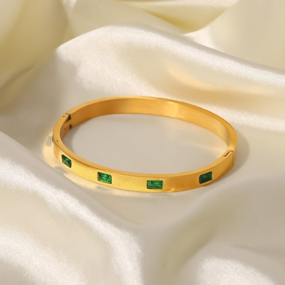 Vintage INS Titanium Gold Open Bangle for Women – Non-Tarnish Stainless Steel, Zircon Accent