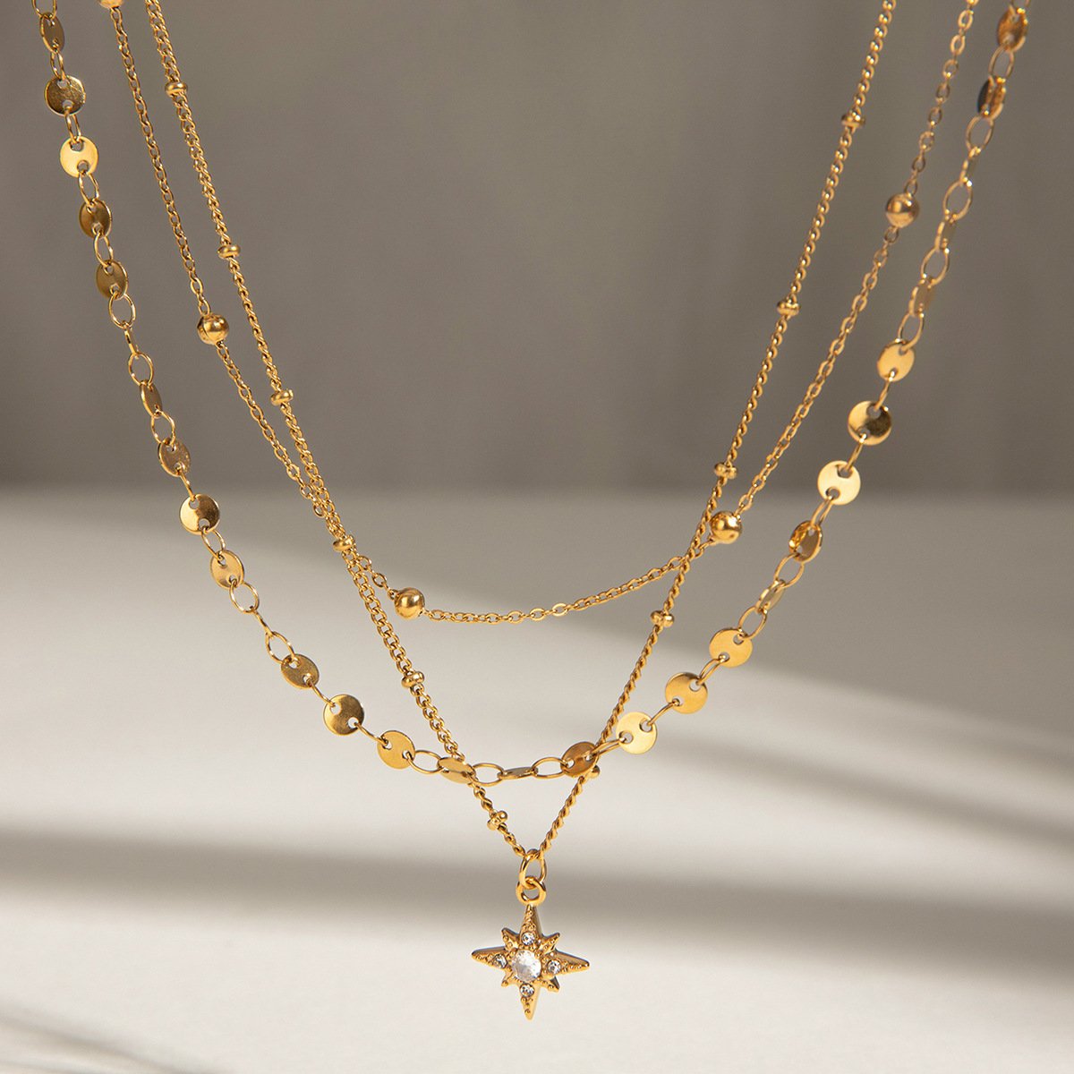 The eight-pointed star is a symbol of cosmic balance, protection, and enlightenment, often associated with spiritual significance. Its symmetrical design represents harmony and unity, making this necklace not just a fashion accessory, but a meaningful piece. The star’s points are meticulously designed to catch light from different angles, giving it an eye-catching, radiant appeal. -
